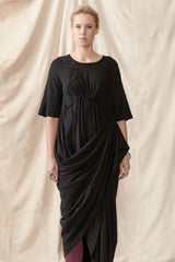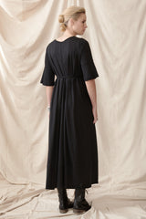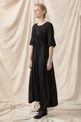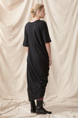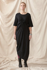 This is the beautiful and amazingly multi-functional Dandelion dress. With a draw cord under the bust line at the front, the shape can be loose, comfy and casual or by drawing the cord tighter, and tying at the back, a more fitted style emerges. There are sneaky press studs which allow you to wrap the skirt across either the back or the front of your body and completely transform the silhouette.